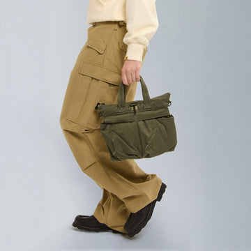 Compact and functional, the Small Helmet Bag by Spiewak draws inspiration from classic U.S. military gear. Crafted from durable Titan Cross fabric—a blend of nylon and cotton—it offers a lightweight yet resilient structure. Featuring a removable shoulder strap and reinforced top handles, it can be carried comfortably by hand or worn over the shoulder, making it a versatile everyday companion.