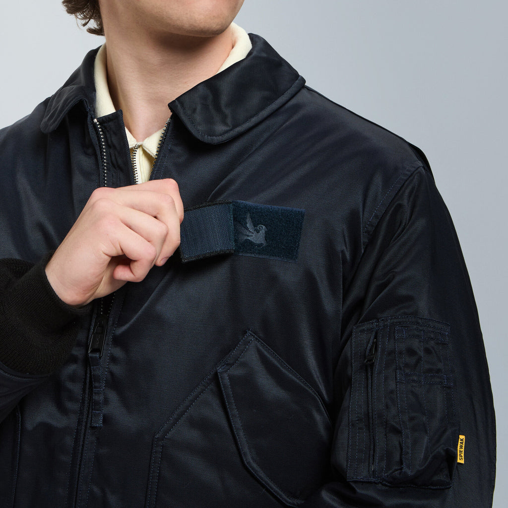 Discover the CWU-55P Jacket, a military-inspired design from SPIEWAK. This jacket is a faithful reproduction of the CWU-45P, an early 1973 A-type model that influenced a new generation of military uniforms.