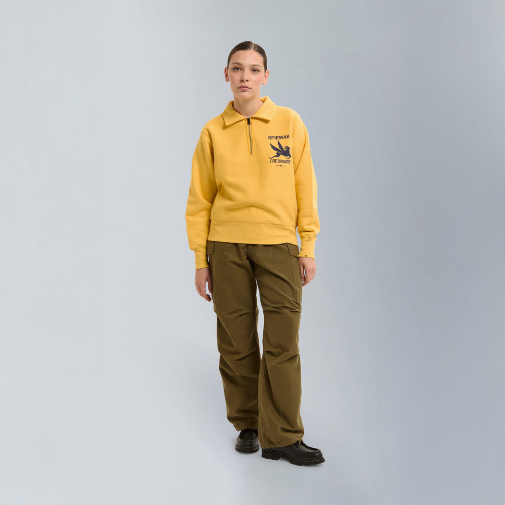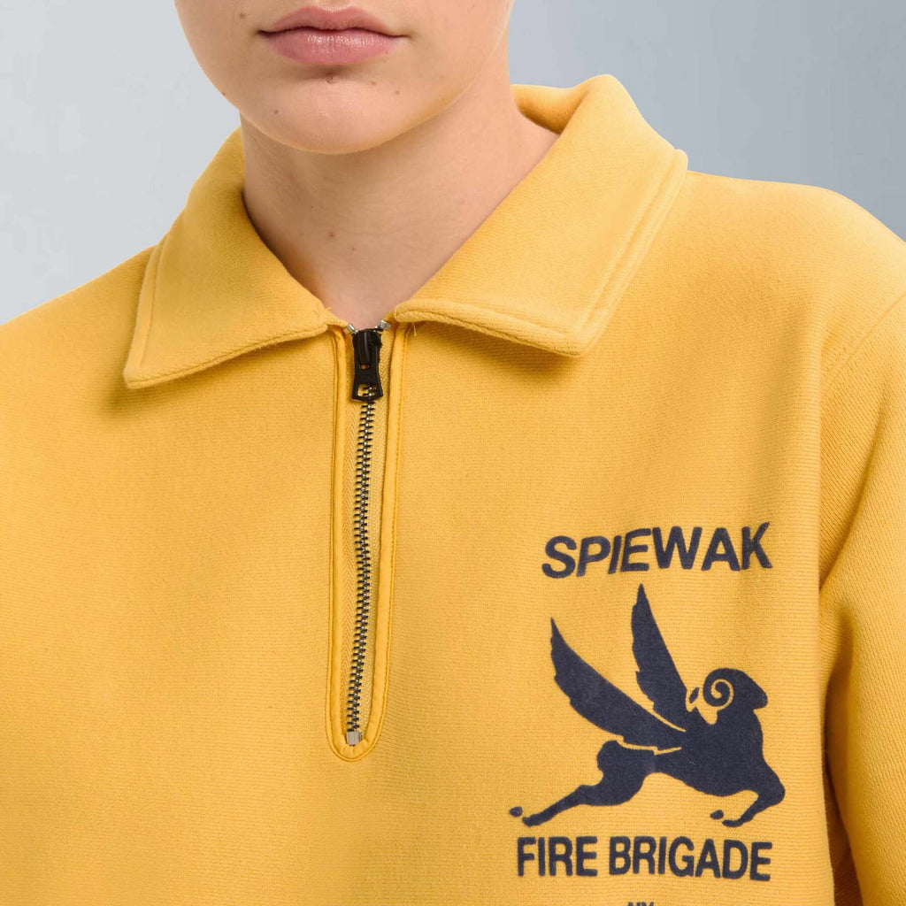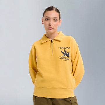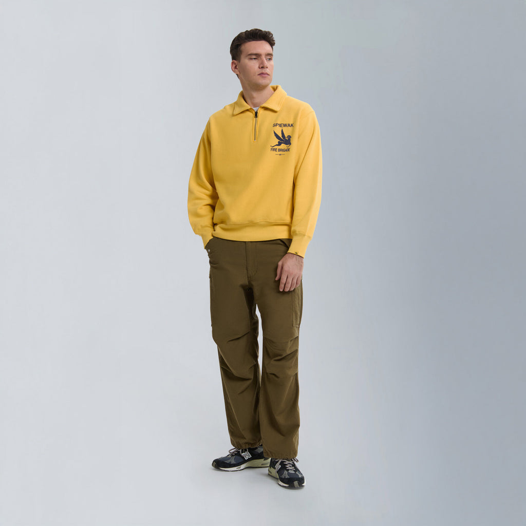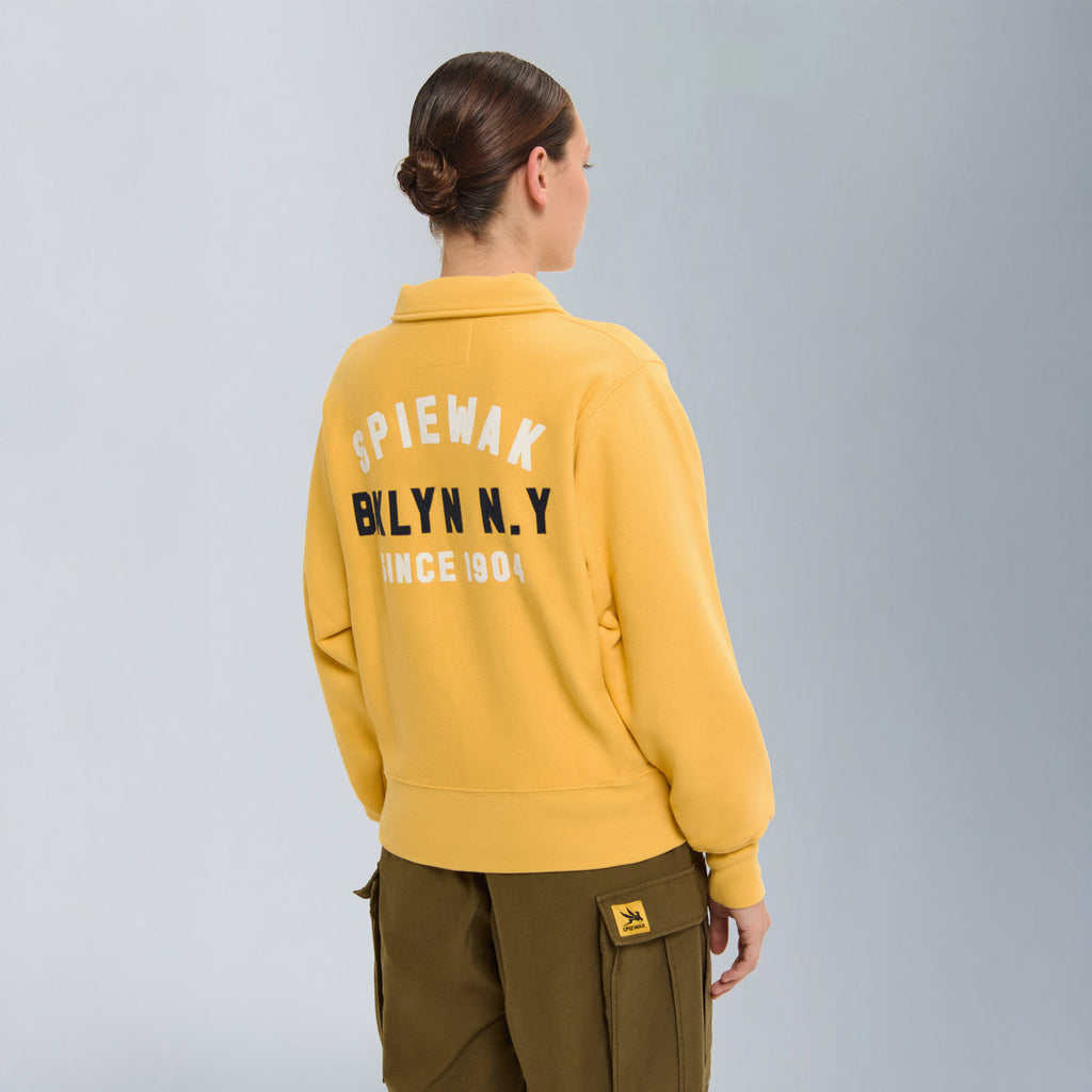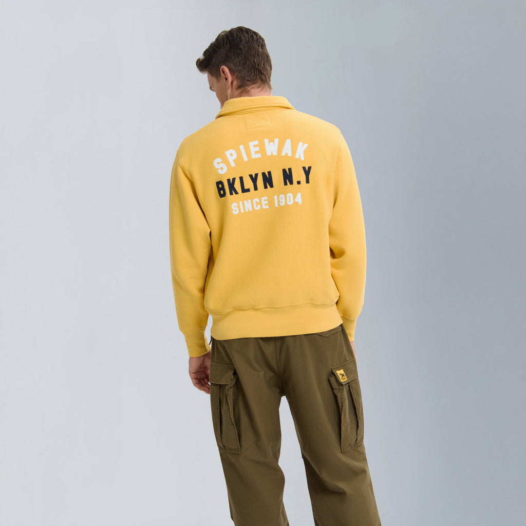 Part of the vintage-inspired sweatshirt series, the Half-Zip Stand Collar is crafted from classic fleece fabric made with open-end yarn on the outer layer. This unique construction gives the piece a structured silhouette and dry hand feel, echoing the authentic texture of vintage sportswear.