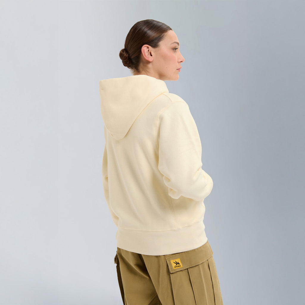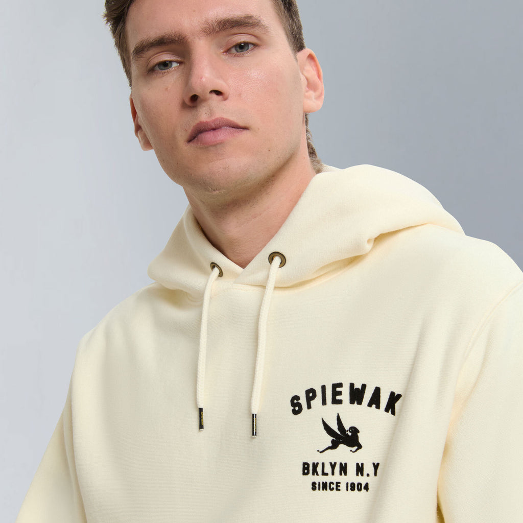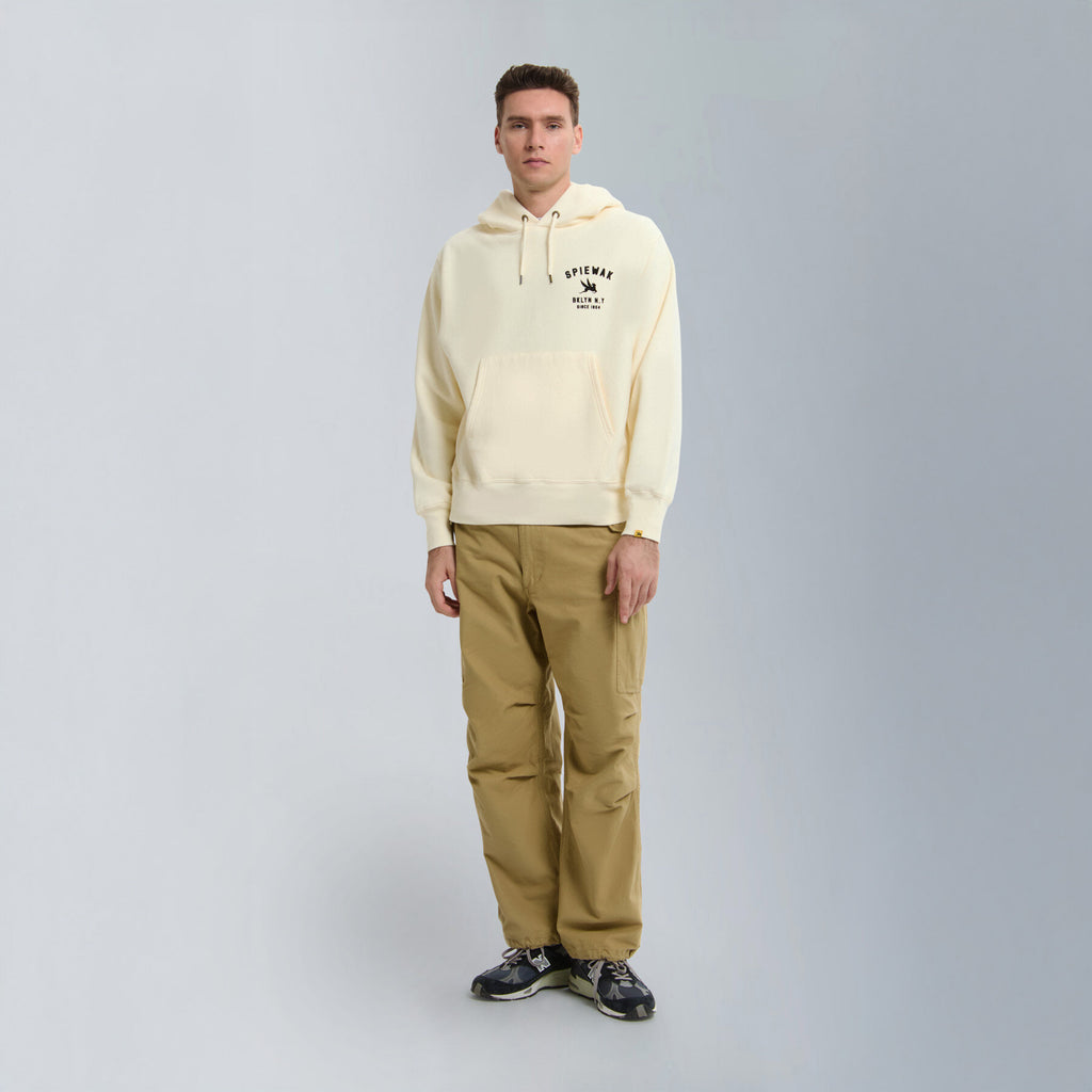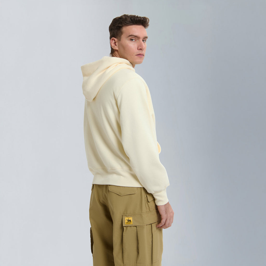 Part of the vintage-inspired sweatshirt series, the Hoodie Pullparka is crafted from classic fleece fabric featuring open-end yarn on the outer layer. This construction gives the piece its signature structured feel and dry touch, echoing the look and texture of true vintage sportswear.