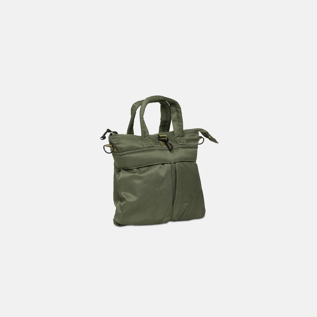 Compact and functional, the Small Helmet Bag by Spiewak draws inspiration from classic U.S. military gear. Crafted from durable Titan Cross fabric—a blend of nylon and cotton—it offers a lightweight yet resilient structure. Featuring a removable shoulder strap and reinforced top handles, it can be carried comfortably by hand or worn over the shoulder, making it a versatile everyday companion.
